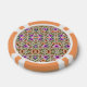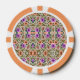 A poker chip with an intricate floral pattern featuring pink, purple, and orange flowers and green leaves on both sides, bordered with orange and white segments.
