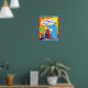 Give a poster to someone you love to remind them of how they make you feel. Or buy this vibrant design for yourself to keep you purring all winter long. The vibrant colors and uplifting theme will make your heart sing and cat lovers will particularly enjoy the black pair sitting in the corner of this print purring with the music.