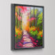 Pretty ai generated image of a trail going through a forest full of pretty green, yellow and pink leaves.