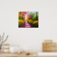 Pretty ai generated image of a trail going through a forest full of pretty green, yellow and pink leaves.