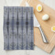 A designer kitchen print in navy blue, gray and green watercolor patterned print.