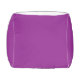 a purple background with a white border pouf