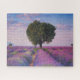 This is a beautiful picture of an already completed puzzle of a lovely tree and rows of lavender. The puzzle pieces don't match the picture--making this a hard puzzle to complete.
