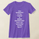 My overall review is that the T-shirt is nice, it fits true to size however the font is significantly smaller than advertised and you can't read it. The printing is unreadable and there is a strain to read it. It does not look like the advertised product. Maybe the shirt color is darker or a larger more visible font should have been used. Photos with and without flash and font is barely legible.