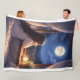 This serene illustration captures a quiet, introspective moment as a young girl gazes out of her window at the luminous full moon. The soft glow of moonlight fills the night sky, casting a calming blue hue over the distant hills and the warmly lit village below, creating a beautiful contrast between solitude and life.