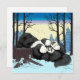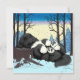 Beautifully hand drawn and colored Newfoundland puppy dog featured taking a quiet winters nap in the snow.