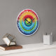 Add a splash of positivity and vibrant color to any space with this wall clock featuring concentric circles in bright rainbow hues. The bold design radiates energy and joy, while a custom inspirational quote elegantly wraps around the circumference, offering motivation at every glance.