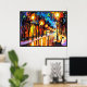 Check out this colorful image of a man with an umbrella strolling down an urban street at night. The colors in this image are stunning and would look great in a bedroom or den area. You can purchase this "Rainy night stroll" poster at my print on demand store. Feel free to browse around my store until you satisfy your curiosity.