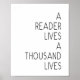 This quote is by the author George R R Martin, whose books are the basis for the Game of Thrones series.. The full quote reads: "A reader lives a thousand lives before he dies. The man who never reads lives only one."
