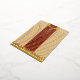 a red and beige carpet with a red border foil holiday postcard