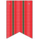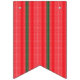 This design features a repeating pattern of red vertical stripes with intricate white floral designs inside them. The stripes are separated by thin green lines, adding contrast to the overall design.