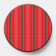 This design features a repeating pattern of red vertical stripes with intricate white floral designs inside them. The stripes are separated by thin green lines, adding contrast to the overall design.