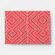 a red and white background with a diamond pattern envelope