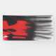A red graphic design featuring bold geometric shap banner