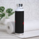 a red h and m logo on a black background water bottle