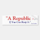 A Republic If You Can Keep It - Benjamin Franklin Bumper Sticker