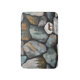 Art work that looks like rocks that have nature scenes painted on them. The art was first created on black paper with oil pastels and some watercolor pencils then it was photographed and uploaded to a computer where some simple features were added.