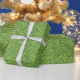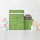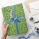 a roll of green textured wrapping paper with a grass-like pattern, curled at one corner to reveal the texture and design of the paper, set against a plain white background