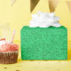 a roll of green wrapping paper with a textured surface, partially unrolled to reveal a smooth white core at one end, set against a plain white background
