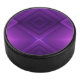 A round purple hockey puck with a geometric diamond pattern on its surface. The design has a vibrant, modern look with a glossy finish.