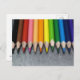 A row of pointy well sharpened colored pencils sitting on a gray granite desk. A nice spectrum of colors from the rainbow. Blue, purple, green, yellow, orange, pink, red, brown and black.