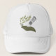 The cartoon slug is being "a-salted" with a salt shaker on this hat. Poor little mollusk! It's a funny design for lovers of animal puns. Choose your own hat colors.