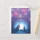 Elegant modern design—Illuminated purple Nativity Scene. Merry Christmas A Savior Is Born postcard.