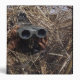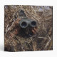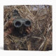 A scout observer practices observation techniques using a homemade ghillie suit featured with on the lookout.