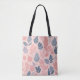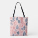 A seamless pattern with various stylized leaves in shades of pink, gray, and white on a light pink background tote bag
