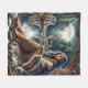 A serene evening by the moonlit river with wolves fleece blanket