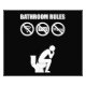 A set of bathroom rules with no wifi, no games and no mess icons and a silhouette person seating on a toilet.