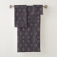 A set of navy blue towels with intricate celestia