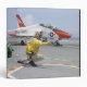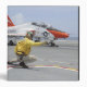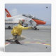 A shooter aboard the aircraft carrier USS George HW Bush launches a T-45C Goshawk training aircraft featured with aircraft carrier.