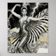 A woman dressed as a showgirl dances in a lightening storm fantasy AI generated art