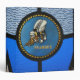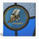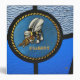 A single Seabee logo built into a stained-glass window featured with bee.