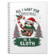 A Sloth For Christmas. Cute, Christmas Sloth With Notebook
