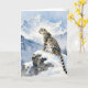 A majestic snow leopard perched on a craggy, snow-covered peak, gazing out at a vast, frozen mountain range. Inside is a poem about snow leopards and the snowy range. The right side is blank so you can add your own message to a friend and family member you just want to say hi or you miss them to.