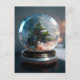 A snow globe with a Christmas tree