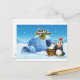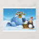 A snowman and a penguin in front of the igloo postcard