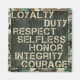 A magnet with a camo background and then the words "Loyalty, Duty, Respect, Selfless, Honor, Integrity, Courage and go Army". The values every soldier lives by. Makes a great gift for any soldier or a soldier's family.