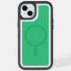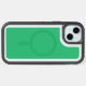 A solid green square positioned on a white backdro iPhone 15 plus case