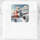 Cute Christmas gift tag sticker featuring a squirrel dressed as Santa flying an antique plane. The text can be removed or altered, but currently says "Merry Christmas" and includes a space for addressing the giver and recipient of the gift.