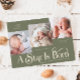 Welcome your little one to the world and share the joy of the season with our elegant Christmas birth announcement card, beautifully titled “A Star Is Born.” Featuring three adorable baby photos on the front and one on the back, this design combines modern typography with festive charm. Personalize it with your baby’s name, birth date, weight, and length, plus a heartfelt thank-you message to friends and family. Perfect for sending holiday greetings while introducing your newest family member. Ideal for winter births, holiday baby showers, or as a keepsake for loved ones. Printed on high-quality card stock with full-color photo printing for a truly special announcement. Background is sage green.