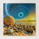 Unleash your imagination with our mesmerizing jigsaw puzzle featuring a surreal and otherworldly scene that beautifully blends nature and the cosmos. This captivating artwork showcases a sandy shore strewn with smooth, rounded rocks in earthy reds, while a striking boulder stands sentinel on the left. As you piece together the serene waters reflecting the golden hues of a breathtaking sunset, let the majestic mountainous silhouettes transport you to a tranquil realm. The highlight of this enchanting scene is the captivating turquoise vortex that dominates the sky, swirling like a cosmic portal. With fine streaks of light radiating outward, this jigsaw puzzle invites you to explore a landscape where reality meets fantasy and every piece brings you closer to a dreamlike atmosphere. Perfect for puzzle lovers and dreamers alike, this masterpiece guarantees hours of engaging fun and a stunning visual achievement that will spark conversations and inspire wonder in any space.