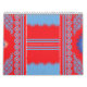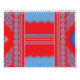 featuring a striking red and blue pattern complemented by a sleek blue border.