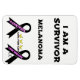 A survivor of Melanoma! On the top of the design are the words "I am a survivor" Under these words is the word "Melanoma" and "Live for Life". On the bottom of the design are 2 black ribbons which is the cancer color of melanoma. On one ribbon it says "A survivor" and on the other black ribbon are the words "live for life". Between these two ribbons are the words "Live for life" with 3 yellow butterflies above the center of these words. On the bottom of the front of the design below the right black ribbon are the initials CC in honor of my sister being a survivor of Melanoma Cancer!