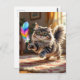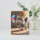 A sweet postcard to say hi and keep in touch with a friend or family member when you are away featuring a sweet fluffy kitten having fun chasing a feather. Total cuteness.