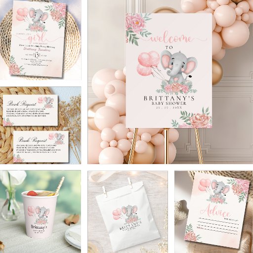 Diseño de Vasos para Baby Shower con con Tematica de un hermoso elefante con globos rosas en acuarela , ideal para que tu fiesta de baby shower. Se puede personalizar con el nombre de tu bebe.