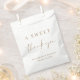 A chic bag for your wedding party favors featuring "A Sweet Thank You" in a modern gold script and elegant gold typography, your names and wedding date.