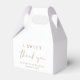 A chic wedding favor box featuring "A Sweet Thank You" in a mix of a modern gold script and elegant gold serif typography, your names and wedding date.